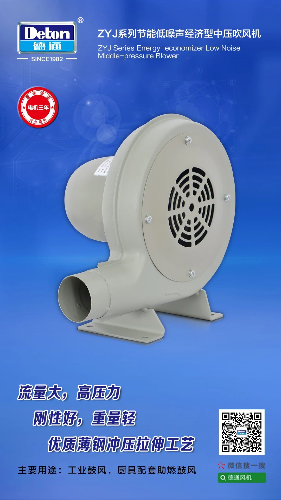 德通風(fēng)機(jī) ZYJ系列節(jié)能低噪聲經(jīng)濟(jì)型中壓吹風(fēng)機(jī)