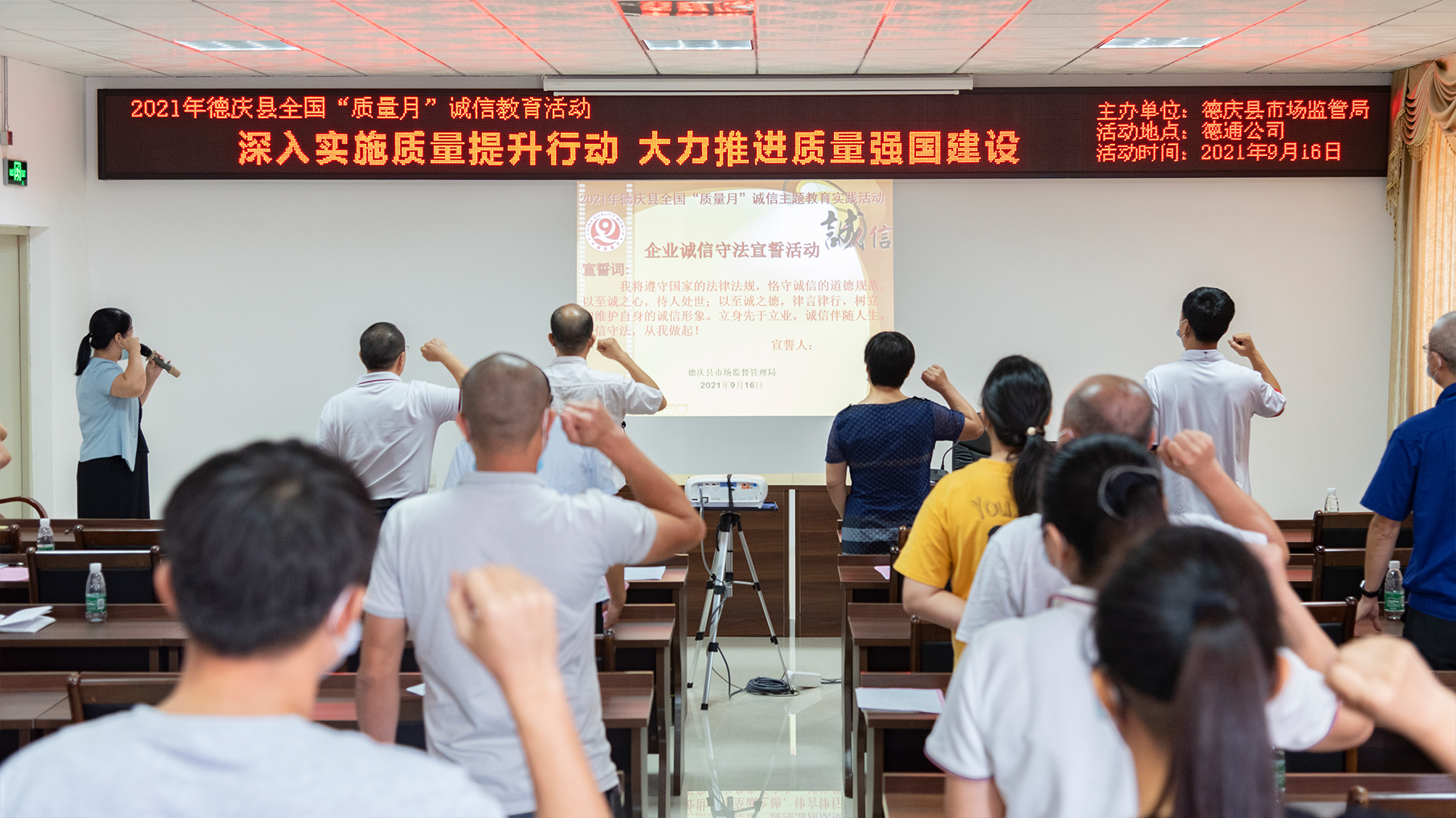 會(huì)議上,德慶縣市場(chǎng)監(jiān)管局貫了相關(guān)法律法規(guī),向企業(yè)派發(fā)宣傳資料;并進(jìn)行了講誠(chéng)信、守法紀(jì)”誠(chéng)信主題教育活動(dòng)宣誓、企業(yè)質(zhì)量誠(chéng)信承諾書簽訂活動(dòng)